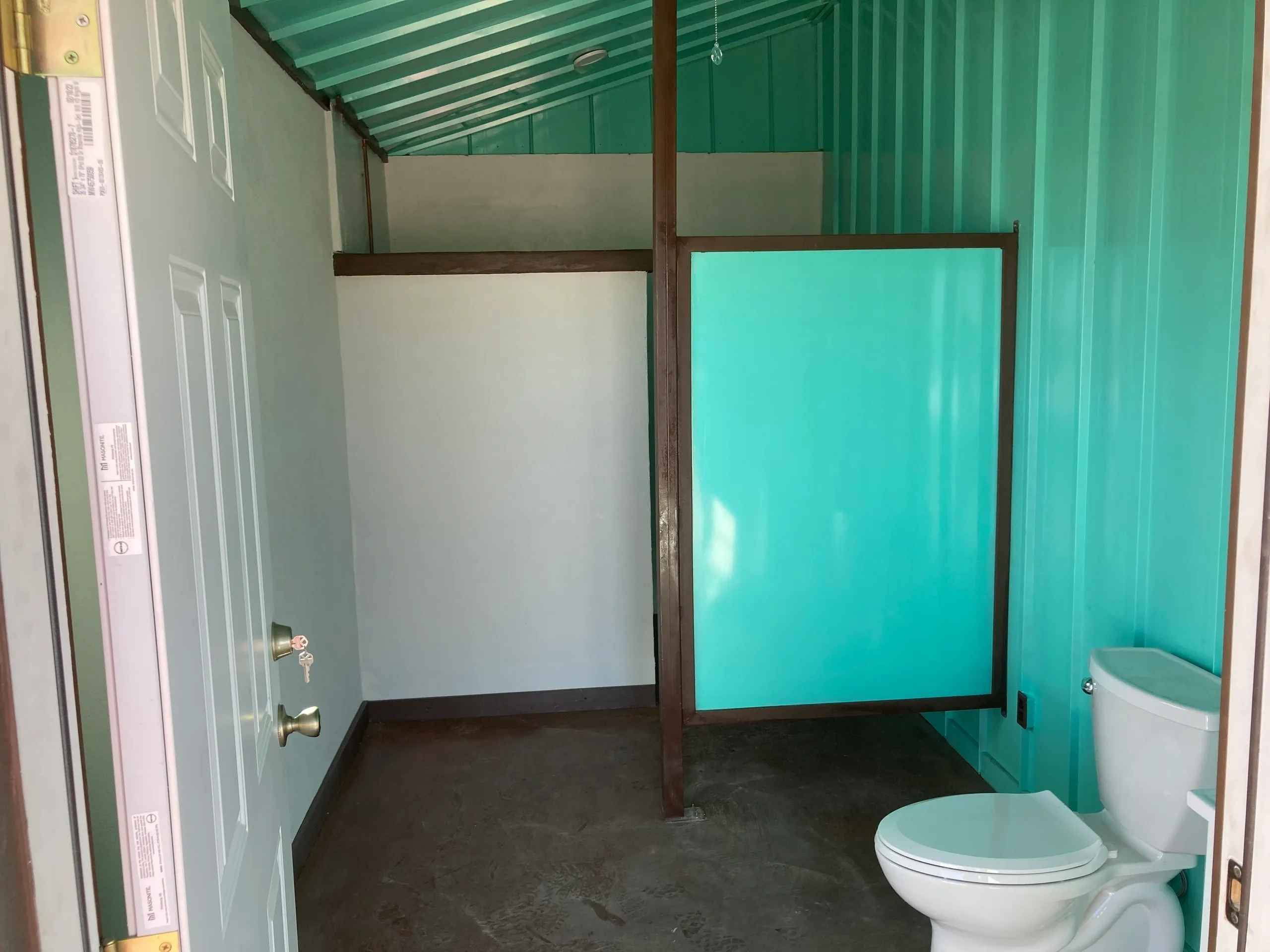 Enjoy our modern restroom facilities, featuring spacious showers.